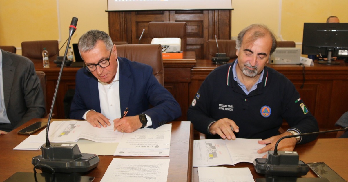 L’accordo è finalizzato alla collaborazione nelle attività di protezione civile e prevede la realizzazione di un polo logistico regionale di Protezione Civile da realizzare nella Città di Sulmona.