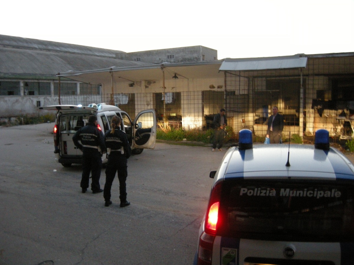 BLITZ ALL'EX COFA: AREA SGOMBERATA DAI DOSPERATI. Blitz del Nucleo anti degrado e sicurezza urbana della Polizia Municipale al comando del maggiore Adamo Agostinone, presso i locali dell’ex Cofa.