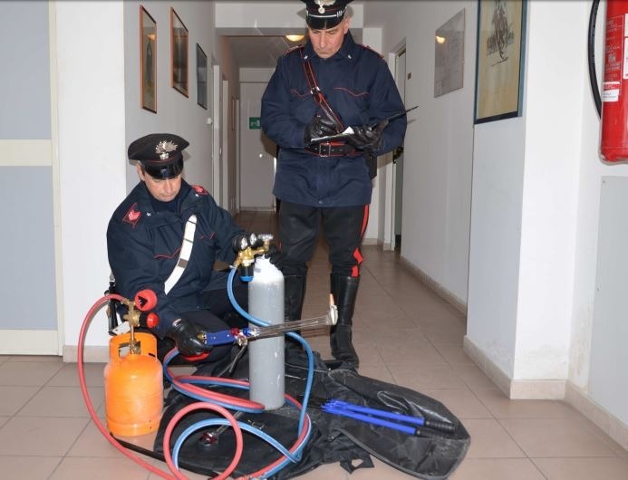 La presenza dei militari ha interrotto l’azione criminosa costringendo i malviventi ad abbandonare sul posto i numerosi arnesi da scasso e due bombole di ossi-acetilene che, collegate con un cannello da taglio, gli avrebbero consentito di aprire il bancomat in modo chirurgico ed a prelevare il denaro.