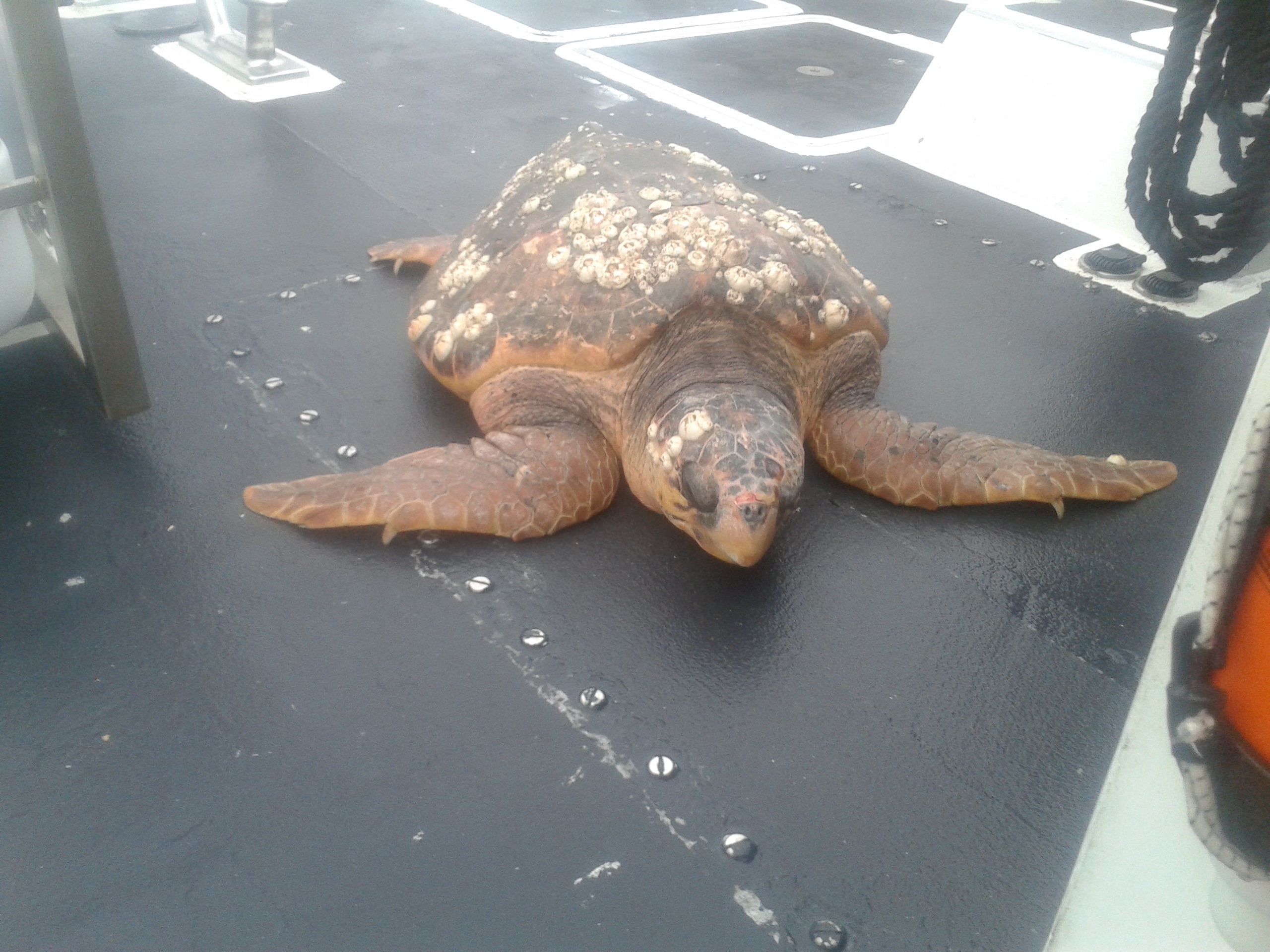 La correttezza di un equipaggio della Marineria di Pescara che ha immediatamente soccorso il rettile. Il veterinario: è in ottimo stato di salute