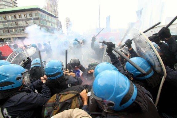 TENSIONE ALLA FIAT DI POMIGLIANO: FERITI 1 POLIZIOTTO E 2 SCIOPERANTI. Qualche giorno fa il Presidente della Repubblica Napolitano, alla conferenza dei prefetti, aveva avvisato col suol linguaggio un pò curiale che "alle difficoltà, per molti aspetti drammatiche di imprese e mondo del lavoro si accompagnano tensioni da affrontare con forte attitudine al dialogo". Eppure alla Fiom di Landini non è sembrata che oggi ci fosse stata questa forte attitudine al dialogo invocata dal "Colle" da parte delle forze dell'ordine schierate al varco numero 1 della Fiat di Pomigliano, per ostacolare il picchettaggio dei cassaintegrati, che al grido di "venduti" accompagnavano i lavoratori che entravano in fabbrica tra due ali di polizia e carabinieri. Sin dalla mattina di sabato sono scoppiate le prime tensioni davanti ai cancelli di Pomigliano con i lavoratori Fiom e Slai Cobas della Fiat che avevano indetto uno sciopero per protestare contro l'utilizzo dello straordinario da parte della Fiat, tra l'altro non retribuito, mentre oltre 2.000/2.500 persone sono in CIG anche da 4 anni e in serio rischio licenziamento. In un comunicato di mercoledì scorso i due sindacati congiuntamente, facevano "appello alle organizzazioni sindacali (ma quali? ndg) e sociali, degne di questo nome, ed alle forze politiche a sostenere le ragioni dei lavoratori e le mobilitazioni in atto". Lo sciopero ha raccolto migliaia di manifestanti che avrebbero voluto dialogare con i lavoratori per convincerli a non varcare i portoni della Fiat e a unirsi alla manifestazione di protesta, ma le forze di polizia non lo hanno permesso. Purtroppo solo singoli esponenti del Pd e del M5S si sono schierati a sostegno della lotta dei cassaintegrati: l'unico partito del cosiddetto arco costituzionale a solidarizzare con i lavoratori in lotta è stata la Sel. Secondo il senatore campano Giuseppe de Cristofaro, di Sinistra Ecologia e Libertà " andrebbe rivista l'intera strategia adottata da Marchionne che non ha prodotto i risultati promessi né in termini di investimenti né tantomeno in termini di reintegro dei lavoratori in cassa integrazione".