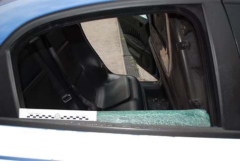 Costretto nell'auto l'esagitato ha continuato a scalciare danneggiando anche il lunotto posteriore dellauto di servizio.
