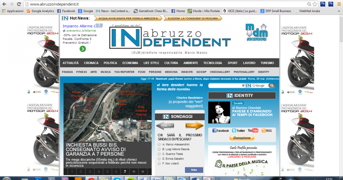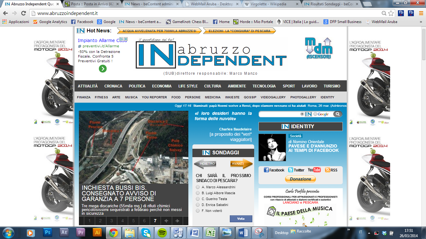 Sull'hompage di Abruzzo Independent è possibile votare il sondaggio: Chi sarà il prossimo sindaco di Pescara.