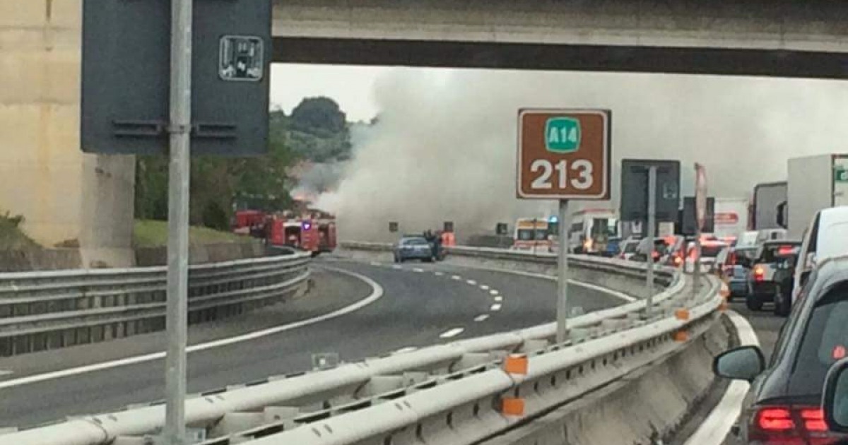 Tir carico di surgelati a fuoco, chiusa l'autostrada A14 fra Roseto e Pescara Nord