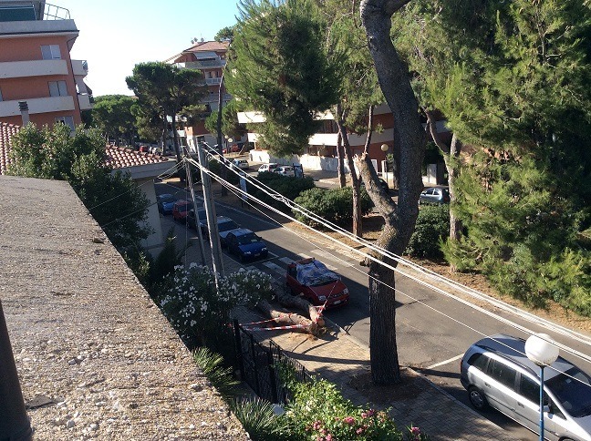 TRAGEDIA SFIORATA ALLA PINETA DI PESCARA. Tragedia sfiorata ieri pomeriggio in via Modesto della Porta nel quartiere Pineta di Pescara. Un albero, per la precisione un pino gigantesco, è precipitato sul marciapiede della strada distruggendo un automobile e dannegiandone altre parcheggiate lungo la via e soltanto per un caso fortuito nessuno è rimasto ferito. Il peso dei rami caduti, infatti, è riuscito a fracassare le lamiere delle vetture parcheggiate e figuriamoci cosa sarebbe potuto succedere se proprio in quel momento il proprietario del mezzo o un passante - la zona, come è noto, è densamente abitata e non nuova a problemi relativi alla scarsa cura del verde pubblico - si fosse trovati lì, in quel punto e in quel preciso momento.