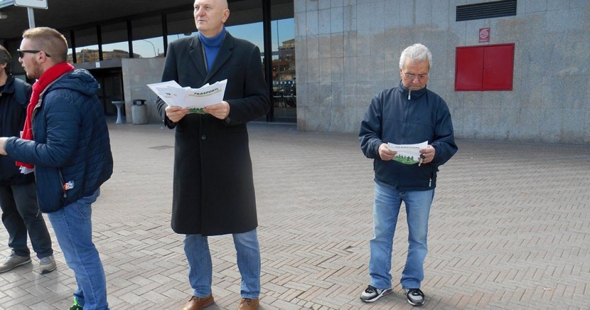 TRASPORTI, LA PROPOSTA DI SEL. Ieri mattina una delegazione di Sinistra Italiana-SEL composta dal deputato Gianni Melilla, dal coordinatore regionale Tommaso di Febo, dal coordinatore provinciale di Pescara Daniele Licheri, dal coordinatore provinciale di Chieti Silvio De Lutis e da Davide Morante, del coord. provinciale di Sel, ha volantinato davanti alla stazione di Pescara, incontrando decine di pendolari, per presentare la campagna regionale di Sel Abruzzo per il rilancio del trasporto pubblico locale (TPL).