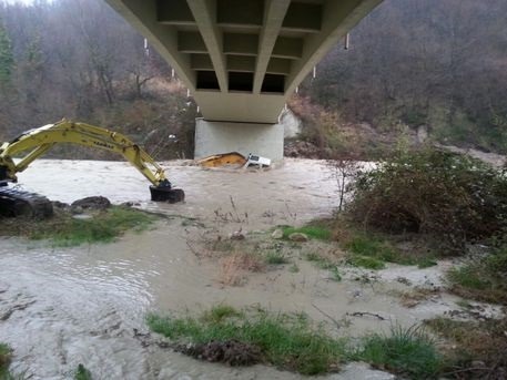 Il mezzo stava effettuando dei lavori d’urgenza per conto del Comune per evitare ulteriori danni al ponte sul fiume