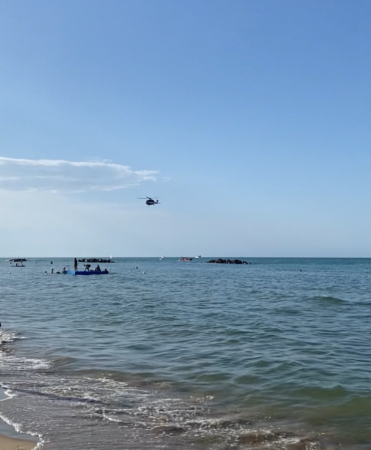 Momenti di terrore questo pomeriggio nel tratto di spiaggia libera tra gli stabilimenti balneari Nettuno e Jumbo. Si spera nel miracolo