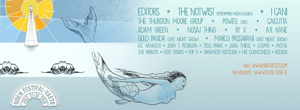 TUTTO PRONTO PER IL SIREN FESTIVAL 2016. Dopo il successo delle due precedenti edizioni, torna dal 23 al 26 luglio, a Vasto, il Siren Festival, manifestazione organizzata da Dna Concerti e Associazione Stardust productions. Per tre giorni, da domani a domenica, si esibiranno in città band ed artisti emergenti e già noti al pubblico, trasformando il centro storico ed alcuni tratti di Vasto Marina in due grandi contenitori di musica e spettacolo. Un evento che porterà a Vasto migliaia e migliaia di visitatori, a conferma del quasi esaurito che si registra in città, nelle strutture ricettive, per il fine settimana che sta arrivando. Per loro si esibiranno artisti come Editors, I Cani, Notwist, A.R. Kane, Calcutta, Thurston Moore Group, Marco Passarani, Gold Panda e tanti ancora insieme a diverse attività collaterali, culturali, sportive ed Enogastronomiche. Il battesimo di uno degli eventi più importanti dell’estate vastese c’è stato stamane, a Palazzo di Città, con la presentazione alla stampa. A fare gli onori di casa, insieme agli organizzatori Pietro Fuccio della Dna Concerti e Louis Avrami, dell’Associazione Stardust Productions il Sindaco Francesco Menna ed il Consigliere Comunale Elio Baccalà . “La città è pronta a fare da cornice ad un evento di statura internazionale”, ha detto il Sindaco - Vasto sarà per tre giorni una vetrina importante sia per i tanti appasionati di musica che per la propria promozione turistica". Per l'evento sono stati accreditati oltre cento giornalisti di testate nazionali e locali e trenta fotografi. Radio 2 Rai, da Piazza Del Popolo, sarà in diretta con Vasto per tutta la serata di venerdì.
