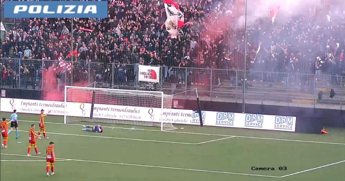Il soggetto ripreso nell’atto dell’accensione e del lancio delle due bombe carta e del fumogeno è un ventenne teramano, conosciuto dalla DIGOS in quanto assiduo frequentatore della curva, già in precedenza identificato per analoghe condotte commesse durante l’incontro di calcio L’Aquila 1927 –Teramo Calcio 1913 del 04.05.2025.