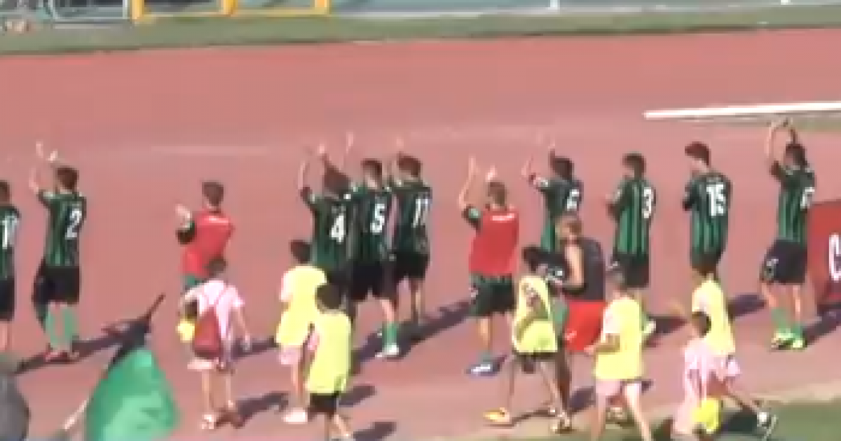PRIMO TEMPO. I neroverdi partono subito lancia in resta senza il minimo timore reverenziale per la blasonata compagine di casa. Al 2° minuto Dos Santos a tu per tu con Ginestra non riesce ad insaccare per un prodigioso intevento del portiere di casa. Il proseguio primo tempo non si rivela particolarmente interessante tranne che allo scadere quando Fatone è costretto a deviare in corner un pallonetto di Borrelli.