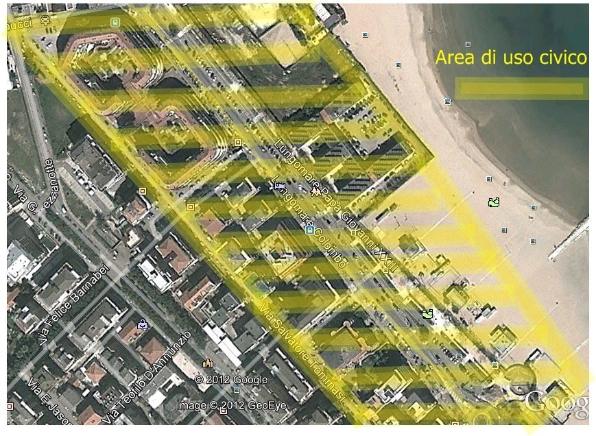 L'AREA E' DEMANIALE. Infatti, osservando la campitura dell’area demaniale civica del foglio di mappa n. 27, quello riguardante il territorio a sud del fiume Pescara e fino all’area del Teatro D’Annunzio, i consiglieri hanno scoperto che «la fascia di territorio ricompresa tra il Lungomare Papa Giovanni XXIII e la spiaggia risulta essere di natura demaniale civica». Si tratta di un territorio sul quale c'è la Fondazione Papa Paolo VI e gli stabilimenti balneari: Sabbia d’Oro, La Conchiglia, Aretusa e il Cavallino Azzurro. «Lo scenario che si delinea, quanto nuovo quanto inatteso, circa i legittimi titolari della proprietà di una vasta parte del territorio cittadino, soprattutto per quel che può interessare l’arenile - si legge nella nota - innesca, inevitabilmente, una nuova presa di coscienza della pubblica amministrazione per gli effetti che questa realtà può configurare rispetto alla tanto discussa direttiva Bolkestein che risulterebbe priva di effetti sugli stabilimenti sopra citati». Inoltre, l’amministrazione comunale si troverebbe nella condizione di risultare il legittimo destinatario dei canoni di affitto dovuto dai titolari degli stabilimenti citati e che oggi, diversamente, sono incamerati dallo Stato.
