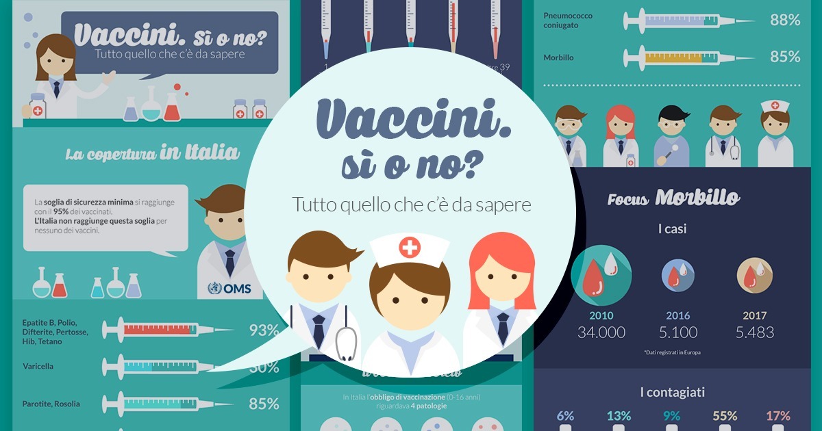 VACCINI: SI' O NO? TUTTO QUELLO CHE C'E' DA SAPERE. La questione vaccini è sempre più dibattuta, soprattutto a seguito dell’approvazione da parte della Camera dei Deputati del nuovo decreto in materia di prevenzione vaccinale. Per fare chiarezza l'Università Niccolò Cusano lancia l’infografica “Vaccini: sì o no? Tutto quello che c’è da sapere”, nella quale viene fatta una panoramica generale sulla situazione della copertura vaccinale in Italia e nel mondo e successivamente le novità subentrate con la nuova legge rispetto alla situazione precedente.
