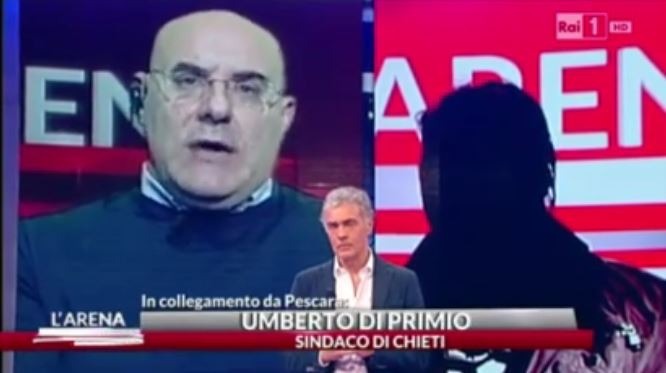 DI PRIMIO QUERELA GILETTI. Al sindaco di Chieti Umberto Di Primio non è piaciuta affatto la chiusura della trasmissione L'Arena, a cui era intervenuto come ospite per parlare dello scandalo "Sex for House" che aveva portato alla condanna dell'ex assessore comunale Ivo D'Agostino. Succede tutto nelle battute finali quando il sindaco di Chieti, rivolgendosi alla concittadina ospite in studio, le ha detto di recarsi da lui personalmente per qualsiasi spiegazione sulla graduatoria degli alloggi popolari. Ma il conduttore Giletti, forse preso dall'euforia della seguitissima diretta, si fa scappare una battuta poco felice: "Vada sempre accompagnata, signora. Mi raccomando". Di Primo ha reagito immediatamente stizzito dalle parole del conduttore del servizio pubblico: "Non scherziamo su queste cose. Non si può scherzare sul resto e nemmeno su questo. La signora può venire benissimo da sola". Nello studio di Rai1 c'erano, oltre alla vittima degli abusi, anche la deputata del Partito Democratico Pina Picerno famose alle cronache per la batuta sugli 80 euro ("bastano per la spesa di due settimane").