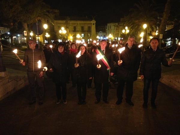 VASTO CONTRO IL FEMMINICIDIO. Ieri sera una lunga ‘marcia silenziosa’ ha riempito le vie del centro di Vasto. Circa cento persone con fiaccole accese hanno partecipato al corteo contro il femminicidio. L’iniziativa promossa dal centro antiviolenza DonnAttiva di Vasto, con le istituzioni, le associazioni, le scuole e i cittadini, è stata organizzata per riaffermare che chi esercita violenza nei confronti di donne e bambini violenta l’intera comunità. Per ribadire che la nostra comunità è vicina a tutte le vittime di violenza. Una marcia silenziosa che ha attraversato le strade cittadine per mostrare la vicinanza e la forza di una comunità intenta ad emarginare la violenza. “Un femminicidio –ha detto Felicia Zulli coordinatrice del centro DonnAttiva- è sempre il risultato di una spirale violenta che culmina con un atto di questo genere. E’ importante dirlo e ribadirlo ed è importante che una comunità, come lo è la nostra, stia vicina alle vittime”.