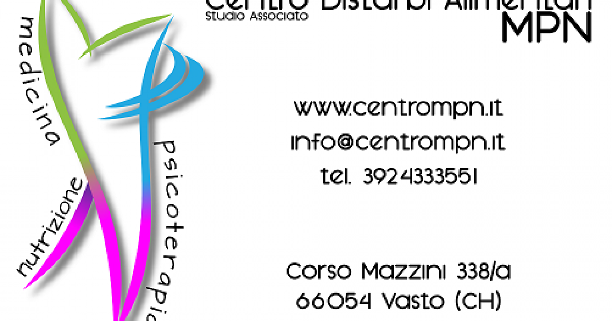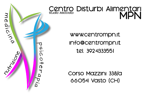 DISTURBI DELL'ALIMENTAZIONE: NASCE A VASTO UN CENTRO D'ECCELLENZA. Il Centro M.P.N. (Medicina Psicoterapia e Nutrizione) - in corso Mazzini 338/a a Vasto - si occupa primariamente dei disturbi del comportamento alimentare (obesità, anoressia e bulimia nervosa, disturbi da alimentazione incontrollata e disturbi dell’alimentazione non altrimenti specificati). La struttura, composta da medici, dietisti, psicologi e psicoterapeuti, prevede un approccio integrato che comprende valutazioni medico-nutrizionali e interventi psicoterapici basati su terapie di tipo cognitivo comportamentale, sistemico – relazionale e di terza generazione (act e mindfulness).