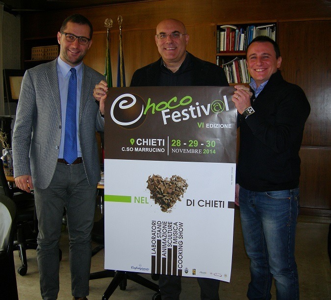 CHIETI. VENERDI' DEBUTTA IL CHOCOPFESTIVAL. Il Sindaco di Chieti, Umberto Di Primio, e il Direttore Provinciale Confartigianato, Daniele Giangiulli, hanno presentato, questa mattina, nel corso di una Conferenza Stampa, la sesta edizione di Chocofestival che, dopo il successo dello scorso anno, con presenze di oltre 50 mila persone, tornerà a svolgersi nel centro storico di Chieti nei giorni 28, 29 e 30 novembre 2014, grazie all’organizzazione di Confartigianato Imprese Chieti, il contributo del Comune di Chieti e della Camera di Commercio di Chieti e il patrocinio della Regione Abruzzo.