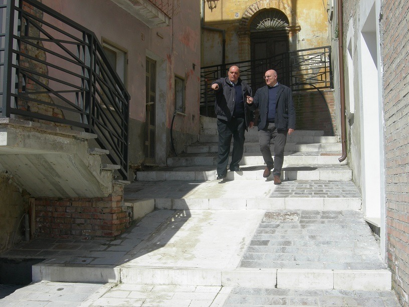 VIA DEI TINTORI RIVEDE LA LUCE DOPO 20 ANNI. «Uno spazio importante del centro storico che torna ad essere illuminato e che oggi riapriamo a vent’anni dal crollo di alcuni edifici della zona che ne determinarono la chiusura. L’intenzione dell’amministrazione è quella di completare, inoltre, la riqualificazione dei quattro alloggi popolari che il Comune acquisì quali beni espropriati a seguito del crollo, che potranno essere messi a disposizione a canone concordato. A tale scopo, infatti, il Comune ha già inoltrato una richiesta di finanziamento regionale per la riqualificazione degli stessi. Sicuramente oggi la riapertura di questa strada, dopo i lavori di messa in sicurezza, restituisce un nuovo e comodo accesso al centro storico». Queste le parole del Sindaco di Chieti Umberto Di Primio che questa mattina, insieme con l’Assessore ai Lavori Pubblici Mario Colantonio, ha riconsegnato alla città il tratto viario pedonale di via dei Tintori, messo in sicurezza e riqualificato con fondi comunitari Por-Fers.