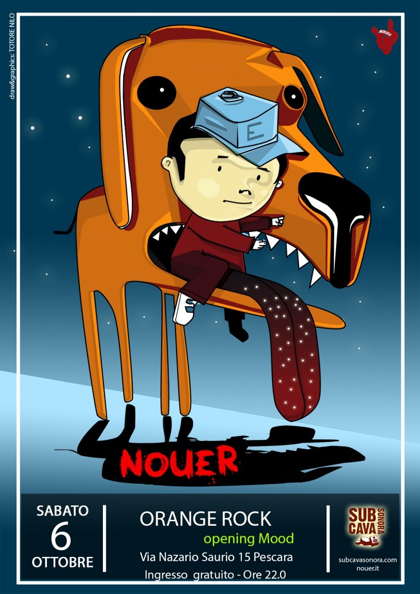 CONCERTO DEI NOUER. Proprio la band prodotta dalla Subcava Sonora sarà protagonista del concerto che si terrà la sera stessa, dalle 22:30, all’Orange Rock (Via Nazario Sauro). I Nouer, esponenti della controcultura DIY avversa al copyright, di ritorno da un Summer Tour che li ha visti suonare con artisti del calibro dei Diaframma, dei Sick Tamburo e dei Fratelli Calafuria, saranno accompagnati nel concerto dai pescaresi Mood, gruppo che trova i suoi elementi caratteristici in schitarrate post-rock talvolta melanconiche, talvolta più rockeggianti.