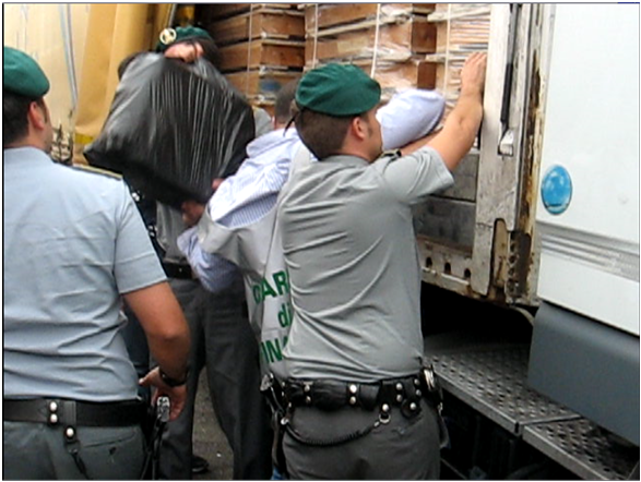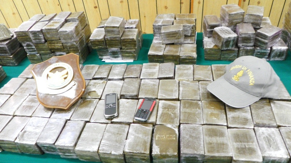 Sgominata banda dedita al traffico internazionale di hashish: tre persone arrestate dalla Direzione Distrettuale Antimafia di L'Aquila. Lo stupefacente, proveniente dalla Spagna, veniva fatto viaggiare sui tir nascosto tra il pesce congelato. In tre anni sono stati sequestrati oltre mille chili di hahish