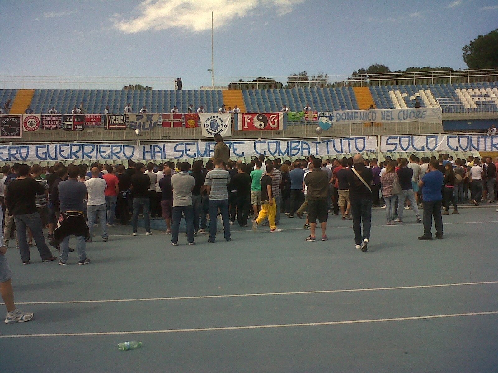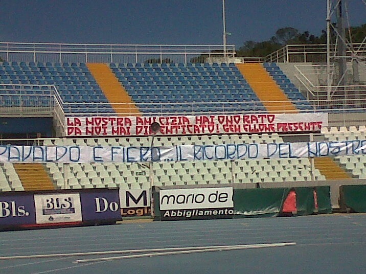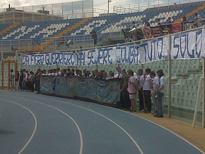 Alcune immagini scattate dentro lo stadio Adriatico, in mezzo ai tifosi del Pescara, che hanno voluto tributare l'ultimo saluto all'ultà Domenico Rigante barbaramente ucciso da un commando di rom al momento latitanti. I Rangers, gruppo a cui Domenico apparteneva, hanno voluto rendere omaggio con canti, sciarpe, fumogeni e bandiere al loro fratello scomparso. C'erano delegazioni di tifosi da Vicenza, Messina e persino da Chieti