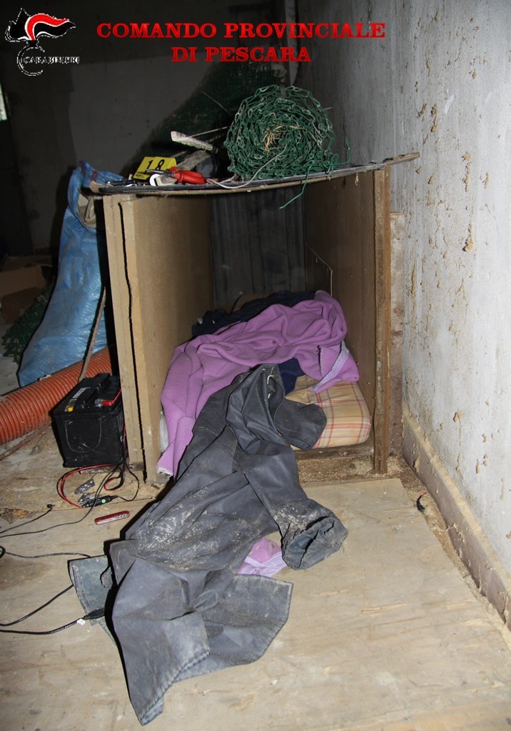 Su luogo, i militari operanti hanno rinvenuto e sottoposto a sequestro il camper utilizzato dal Di Santo. Lo stesso aveva inoltre nella disponibilità una pistola ad aria compressa priva del tappo rosso. Vi era inoltre la bici utilizzata per gli spostamenti. Nei pressi del luogo il Di Santo si era preparato un ulteriore nascondiglio al cui interno è stato trovato materiale informatico e apparecchiature video fotografiche, oltre ad una bombola di gas GPL piena.