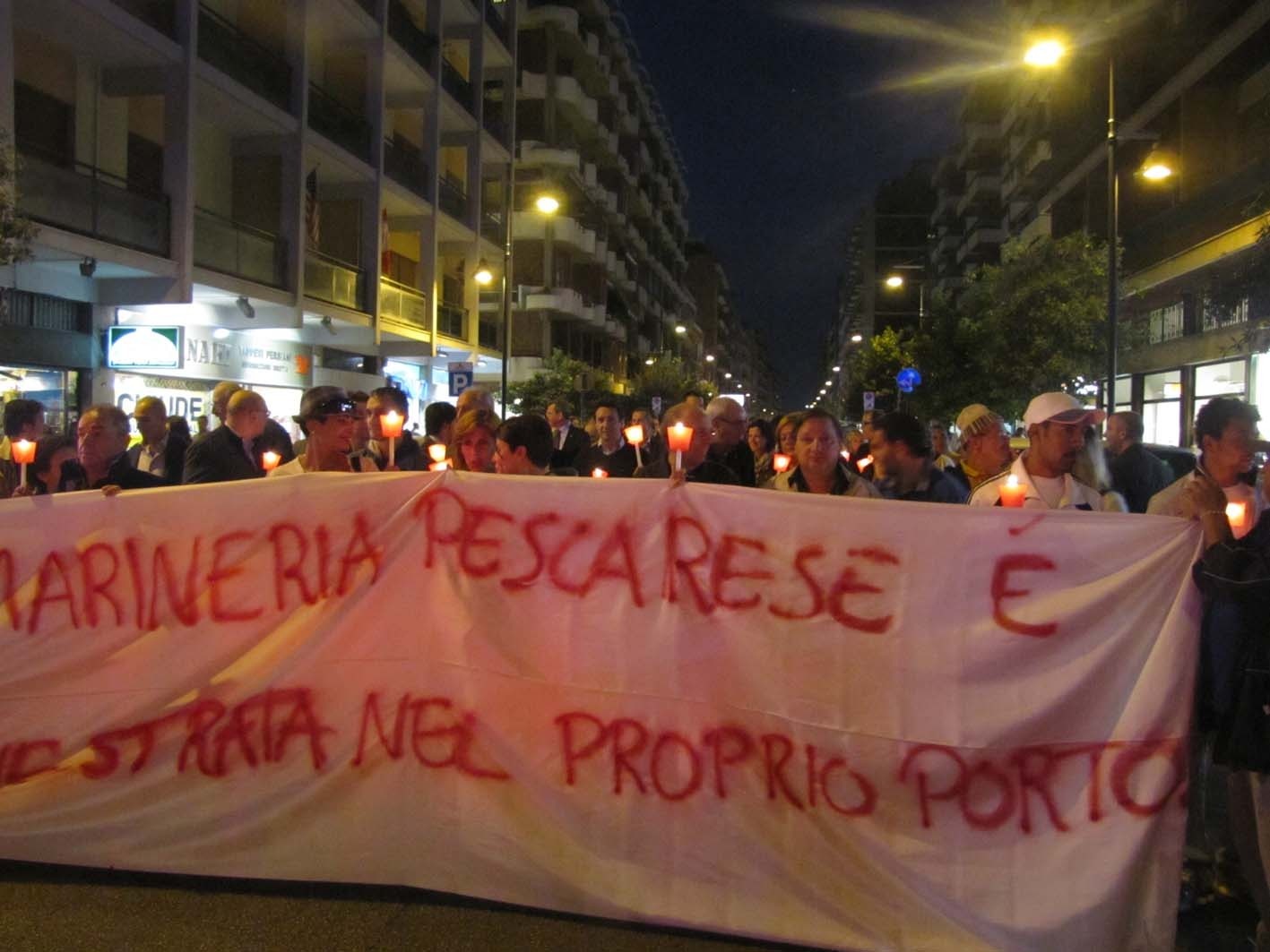 Le immagini della fiaccolata organizzata dalla marineria di Pescara per denunciare il dramma del mancato dragaggio del porto. In centinaia si sono riversati nelle strade del centro della Città per fare appello alle istituzioni. Ci sono stati anche dei momenti di tensione. I pescatori rivogliono il lavoro ed è colpa della politica per tutto quello che stà accadendo.