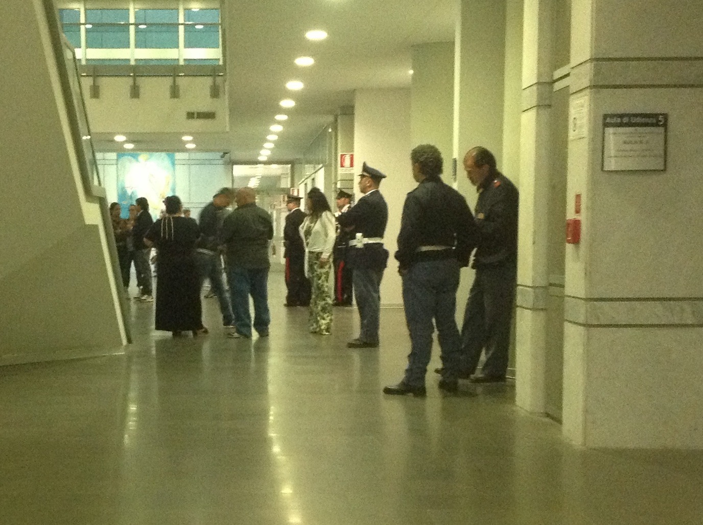 Il tribunale di Pescara era in stato d'assedio questa mattina dopo i fatti dello scorso 16 aprile quando si sfiorò la rissa tra i familiari di Massimo Ciarelli e gli amici di Domenico Rigante, l'ultrà ucciso lo scorso primo maggio