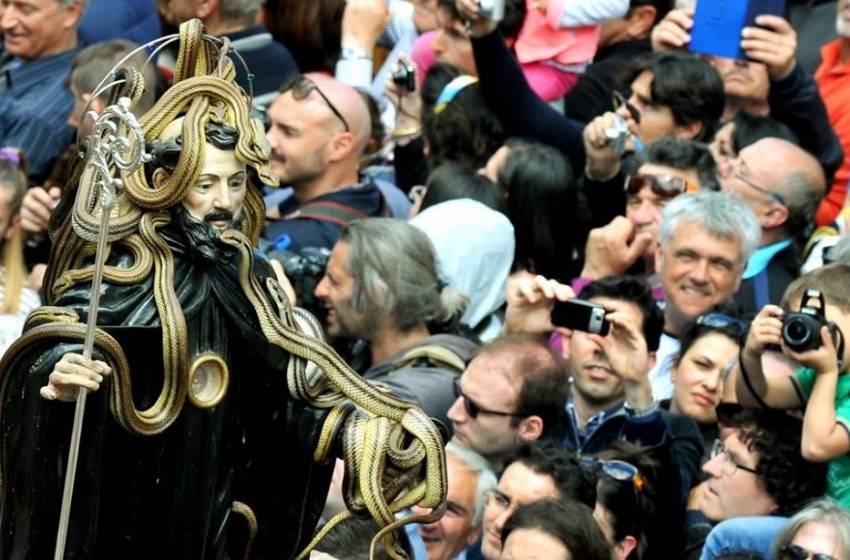 ABRUZZO IN DELIRIO PER LA FESTA DEI SERPARI. Ogni anno, il primo di maggio, il piccolo paese di Cocullo, solo 246 anime nella comunità montana...