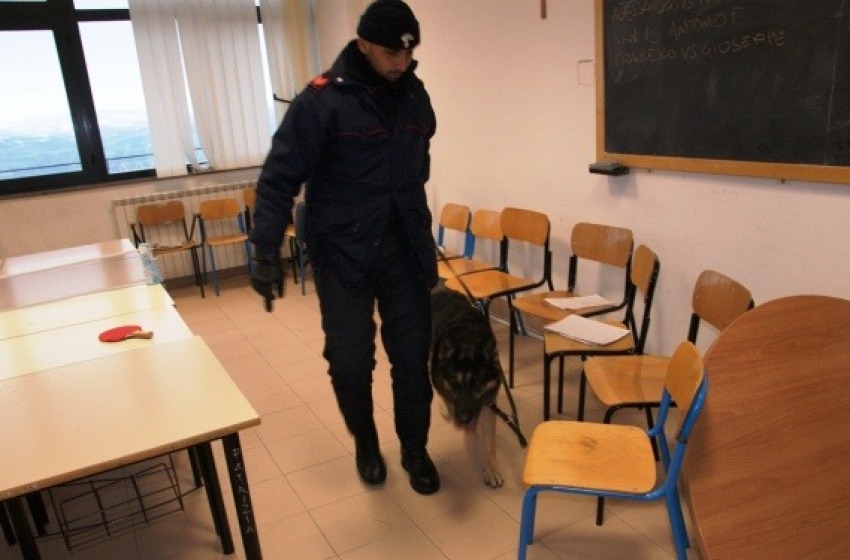 I carabinieri mandano i cani anti-droga al "Volta" di Pescara. Controllate 20 classi