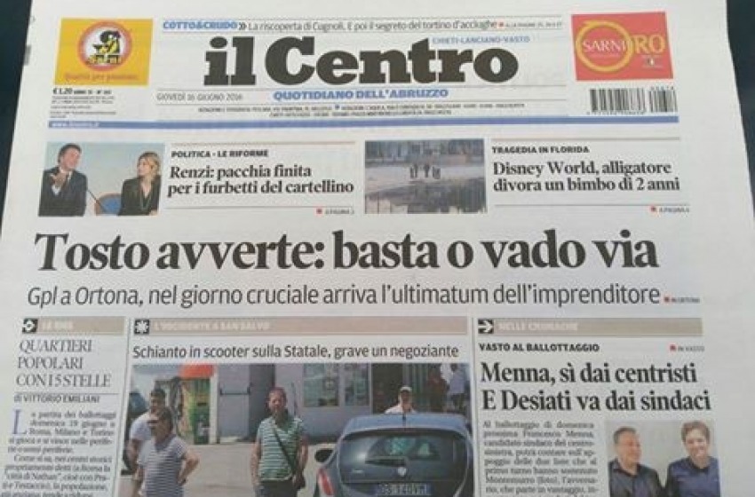 IL CENTRO CHIUDE LA REDAZIONE A CHIETI. APPELLO DEL SINDACO A LEGNINI. Il sindaco di Chieti Umberto Di Primio non è certo uno che le manda a dire e...