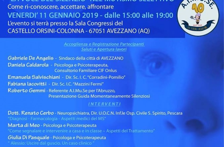 "La voce del silenzio nel mutismo selettivo", convegno ad Avezzano